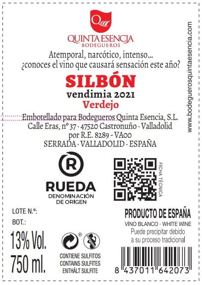 Viticulture: This wine is made with the variety of grape Verdejo, from a controlled vineyard of 29 years of age, in formation of trellis, located in the municipality of Rueda (Valladolid). At 761 meters of altitude.